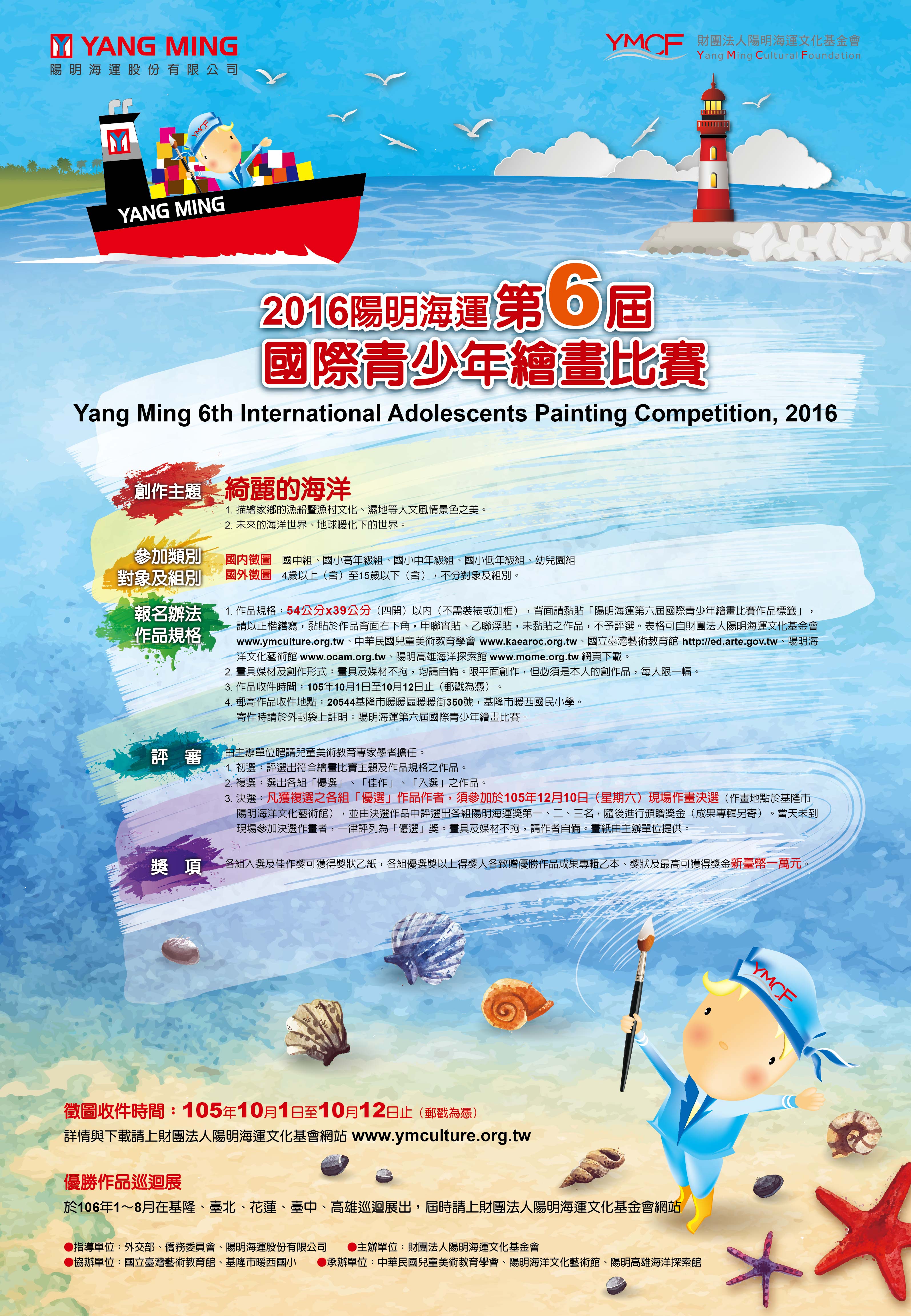 財團法人陽明海運文化基金會 2016年「陽明海運第六屆國際青少年繪畫比賽」海報