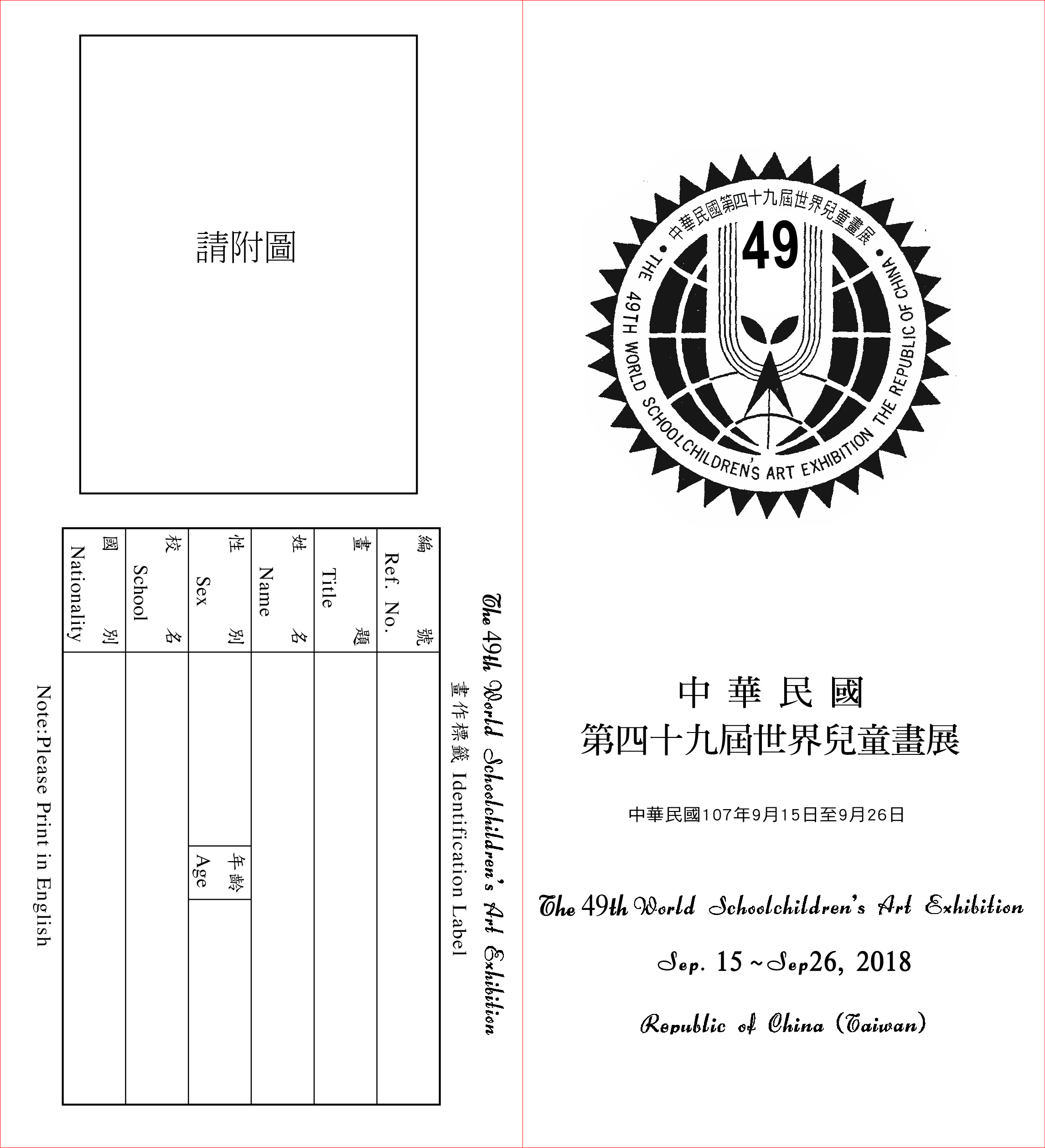 中華民國第49屆世界兒童畫展-英文簡章-畫展反面